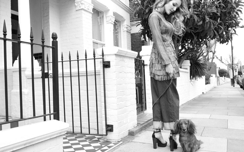 Photographer Heather Bohnenstiehl captures model Priscila Uchoa (Storm Models London) and her two long-haired wiener dogs Peanut and Cherry, in this a…